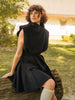 Спідниця міні з середньою посадкою та розкльошеним силуетом завдяки вставленим клинам. Виконана з фактурної тканини чорного кольору, має рівний пояс та приховану блискавку ззаду. Усередині передбачена підкладка для зручності та комфортної посадки.