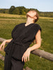 Жилет з V-подібним вирізом прямого силуету, виконаний з фактурної тканини букле. має класичний крій без рукавів. Пояс на талії фіксує посадку та додає виразності образу.